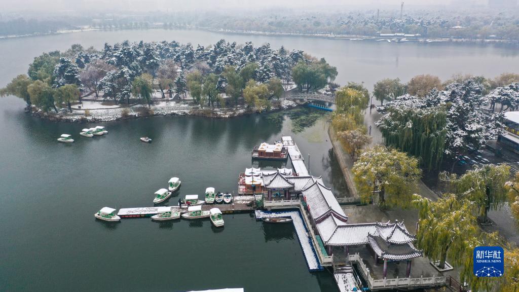 11月1日拍攝的長(cháng)春市南湖公園雪景(無(wú)人機照片)。