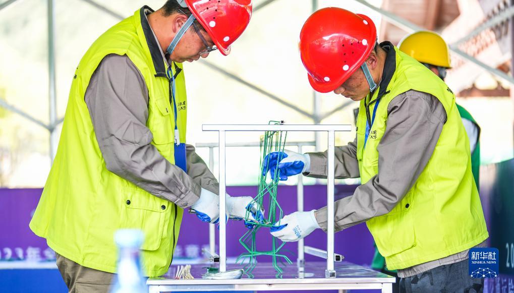 11月1日,選手參加鋼筋骨架加工項目比賽。