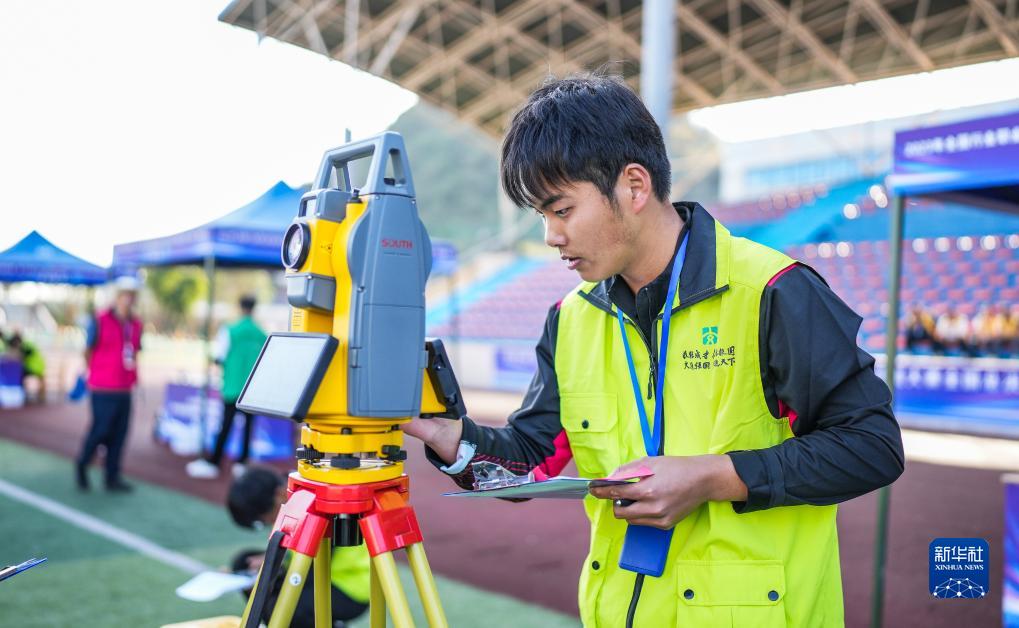 11月1日,選手參加施工放樣項目比賽。