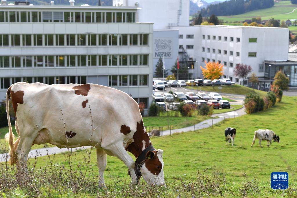 這是10月31日在瑞士科諾爾芬根雀巢工廠(chǎng)外的牧場(chǎng)拍攝的奶牛。