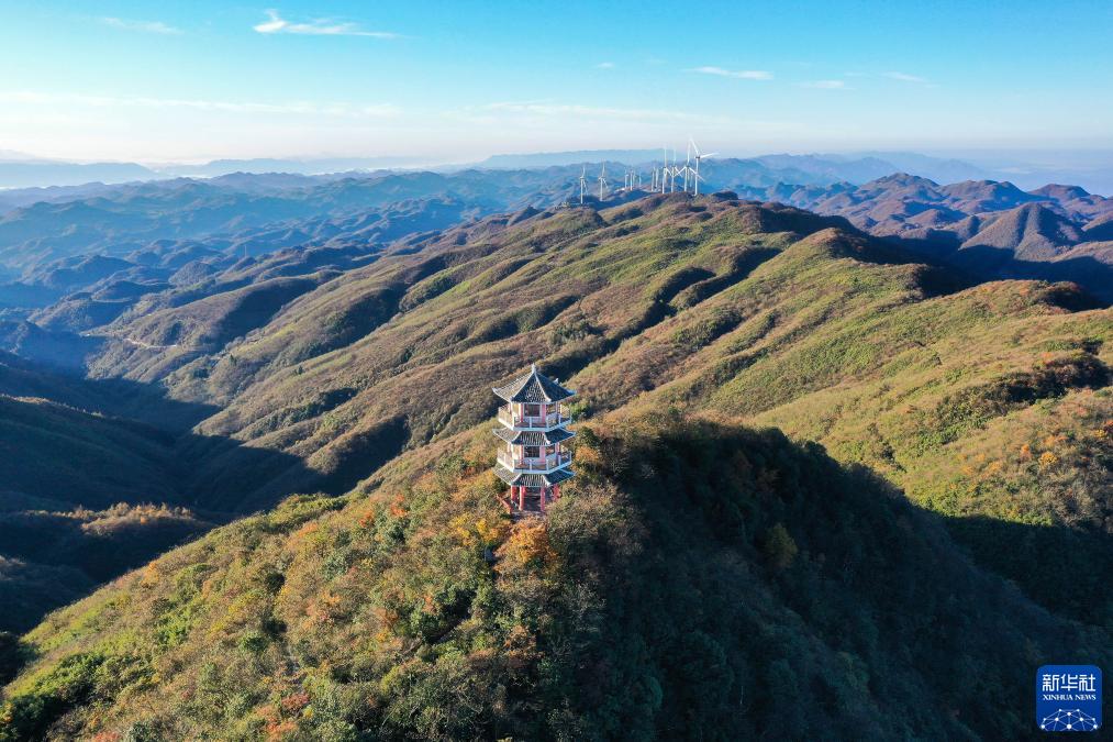 11月1日拍攝的湖南省湘西土家族苗族自治州龍山縣大安鄉萬(wàn)寶山林場(chǎng)秋色(無(wú)人機照片)。