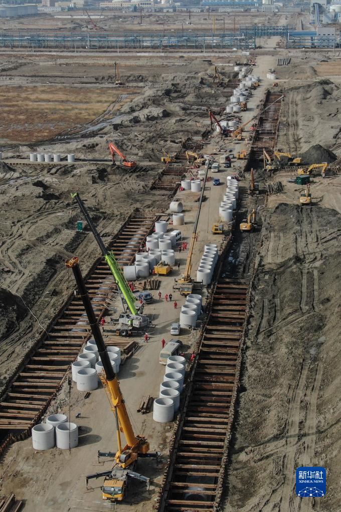 11月1日拍攝的華錦阿美精細化工及原料工程項目施工現場(chǎng)(無(wú)人機照片)。