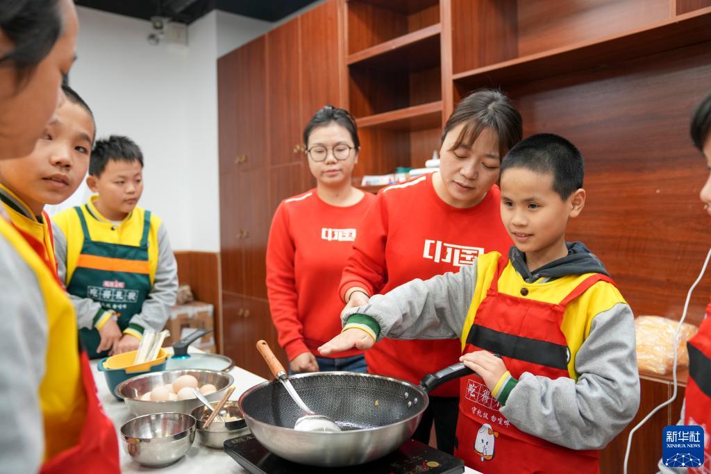 10月30日,在重慶市特殊教育中心的勞動(dòng)課教室內,一名三年級的視力障礙學(xué)生在老師的指導下用手感受煎蛋的油溫。