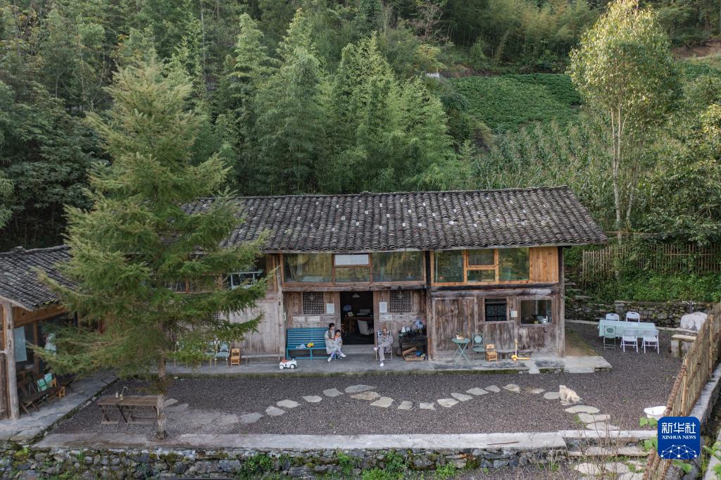 9月16日,在重慶市城口縣北屏鄉松柏村,文森一家三口在家中享受周末時(shí)光(無(wú)人機照片)。