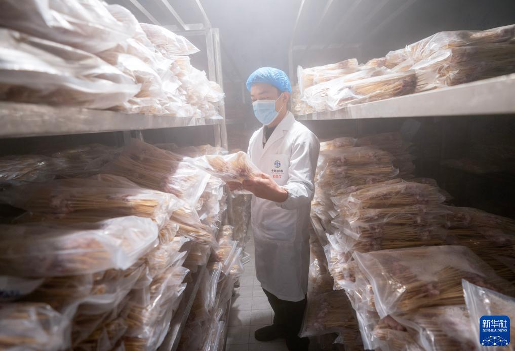 11月3日,工作人員在昭通市昭陽(yáng)區中新慧農供應鏈小肉串中央工廠(chǎng)冷藏庫里查看小肉串。
