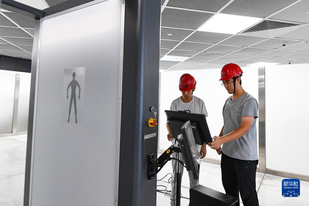 11月3日,工人在??谛潞8酆湍细邸岸€(xiàn)口岸”(客運)客運查驗設施、設備建設項目上進(jìn)行調試安裝。
