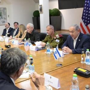 11月3日,在以色列特拉維夫,以色列總理內塔尼亞胡(后排右二)會(huì )見(jiàn)到訪(fǎng)的美國國務(wù)卿布林肯(前排右二)。