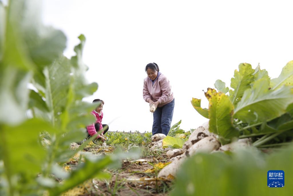 11月3日,河北省邢臺市襄都區泉東街道辦事處白塔社區農民在田間采收蘿卜。