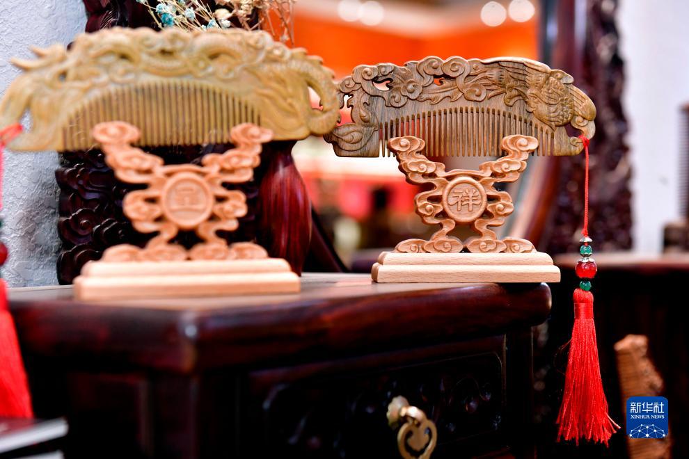 近年來(lái),山東省濟寧市嘉祥縣大張樓鎮依托省級非遺嘉祥木雕技藝資源,在木雕龍頭企業(yè)帶動(dòng)下,大力發(fā)展木梳產(chǎn)業(yè)。嘉祥木梳將傳統中國畫(huà)的元素融入到設計中,讓用戶(hù)感受傳統文化魅力。目前,嘉祥縣大張樓鎮木梳產(chǎn)業(yè)年產(chǎn)值過(guò)億元,已成為當地鄉村振興的特色主導產(chǎn)業(yè)之一。