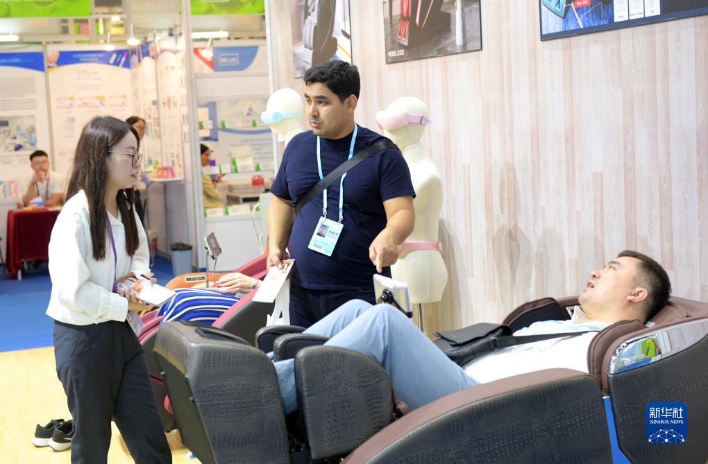 11月4日,客商在廣交會(huì )上選購按摩椅。