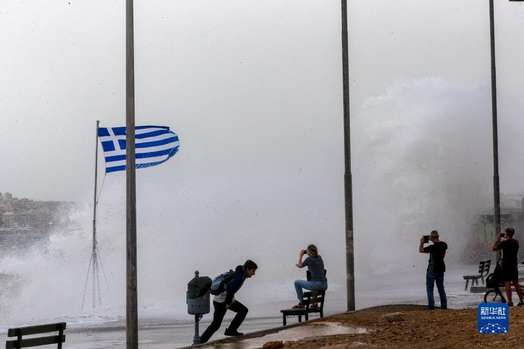 這是11月4日在希臘雅典海邊拍攝的大浪。
