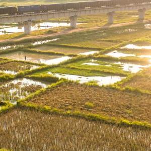 這是11月4日拍攝的老撾首都萬(wàn)象一處田地景觀(guān)(無(wú)人機照片)。