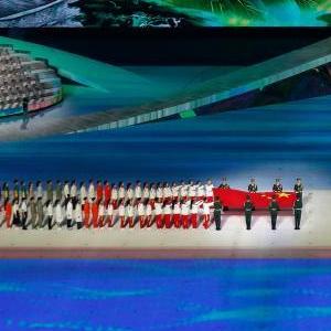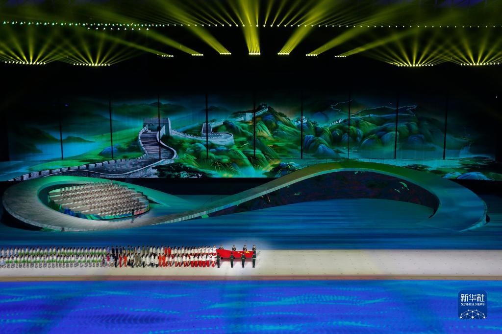 11月5日,中華人民共和國國旗在開(kāi)幕式上入場(chǎng)。