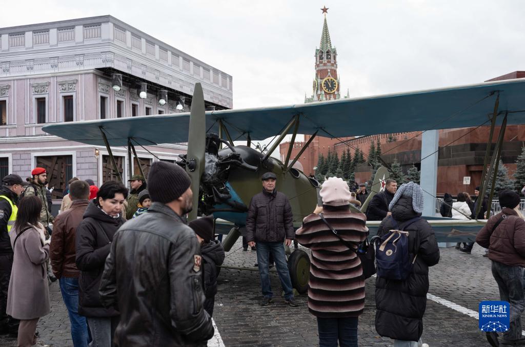 11月5日,在俄羅斯首都莫斯科,人們在以紀念1941年蘇聯(lián)紅場(chǎng)閱兵式為主題的露天展覽上拍照。