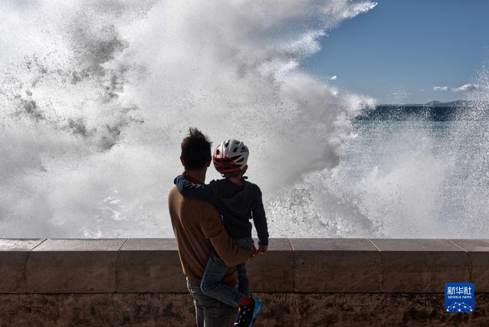 近日,受風(fēng)暴天氣影響,法國尼斯海岸巨浪拍岸,吸引人們駐足觀(guān)看。
