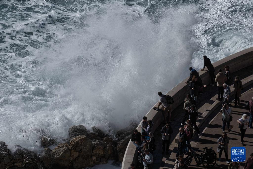 近日,受風(fēng)暴天氣影響,法國尼斯海岸巨浪拍岸,吸引人們駐足觀(guān)看。