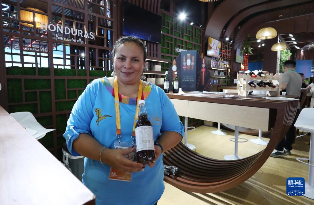 11月6日,來(lái)自洪都拉斯的卡倫·約翰娜·皮內達·加西婭手捧一款洪都拉斯特產(chǎn)葡萄酒站在展臺前。這是她第一次來(lái)到中國上海參加進(jìn)博會(huì ),她感到很高興,希望以后每年都能來(lái),也希望能通過(guò)進(jìn)博會(huì )成功找到中國合作伙伴。