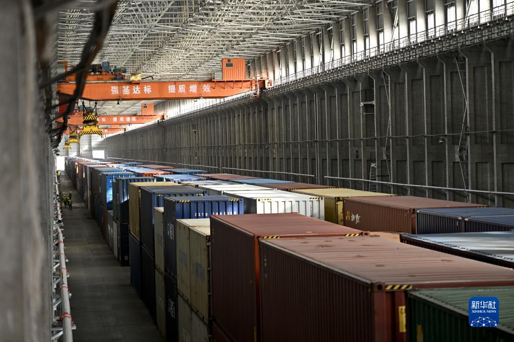 這是中國鐵路烏魯木齊局集團有限公司阿拉山口站換23集裝箱換裝庫(11月4日攝)。