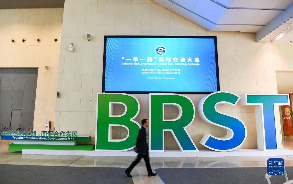 11月6日拍攝的首屆“一帶一路”科技交流大會(huì )會(huì )場(chǎng)一角。