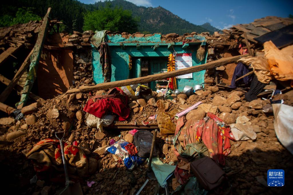 這是11月6日在尼泊爾西部扎澤爾果德地震災區拍攝的建筑物廢墟。