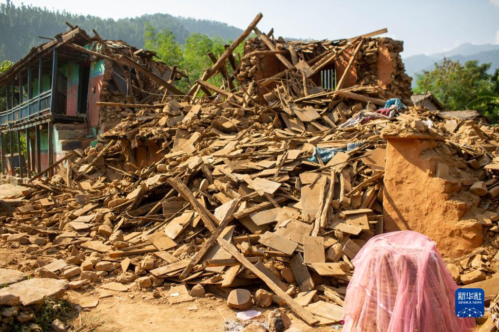 這是11月6日在尼泊爾西部扎澤爾果德地震災區拍攝的建筑物廢墟。