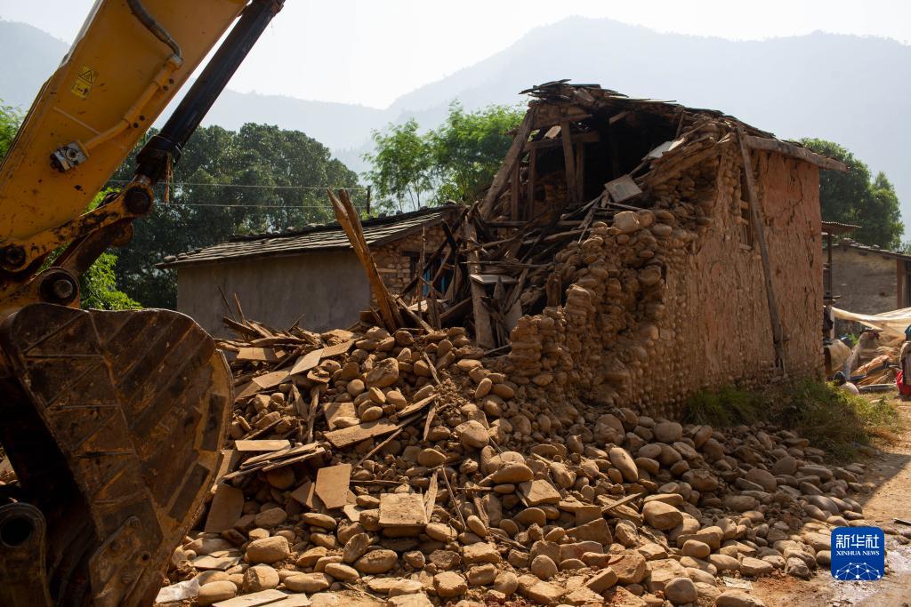 這是11月6日在尼泊爾西部扎澤爾果德地震災區拍攝的建筑物廢墟。