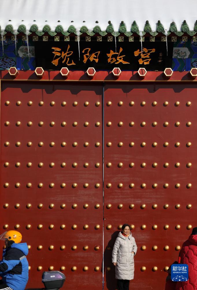 11月7日,游客在沈陽(yáng)故宮門(mén)前拍照留影。