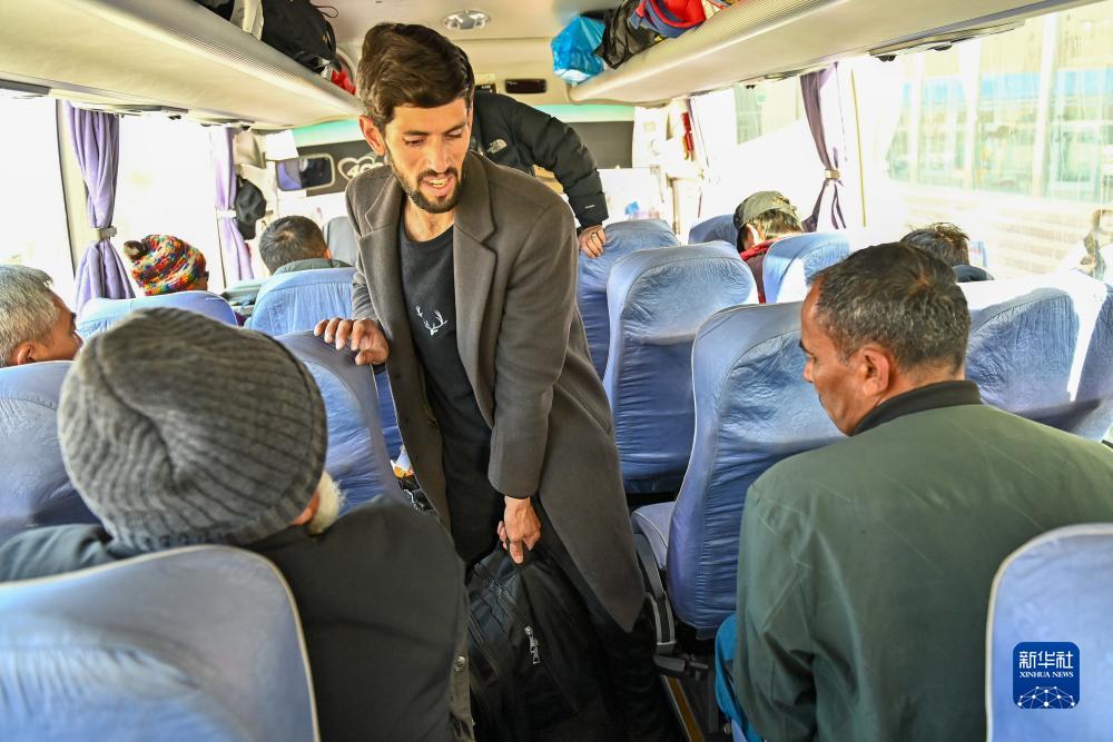 在新疆紅其拉甫口岸,出境旅客登上國際道路旅客班車(chē)(11月6日攝)。