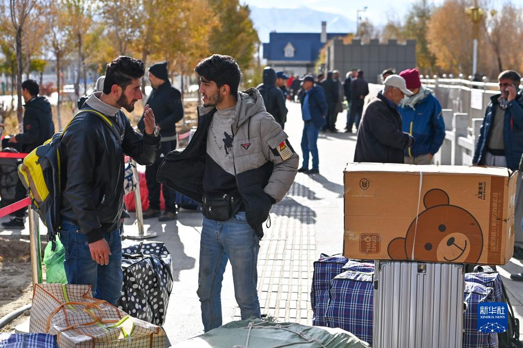 出境旅客在新疆紅其拉甫口岸等候辦理通關(guān)手續(11月6日攝)。