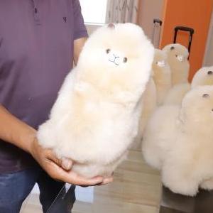 11月7日,馬馬尼大叔在上海進(jìn)博會(huì )“溫暖駝”品牌展臺展示羊駝玩偶。