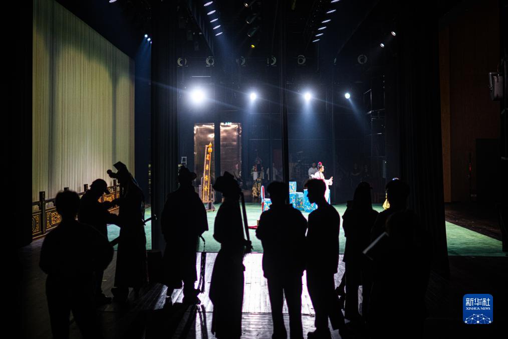 10月28日,楚劇演員在場(chǎng)邊等待出演《秦瓊表功》。