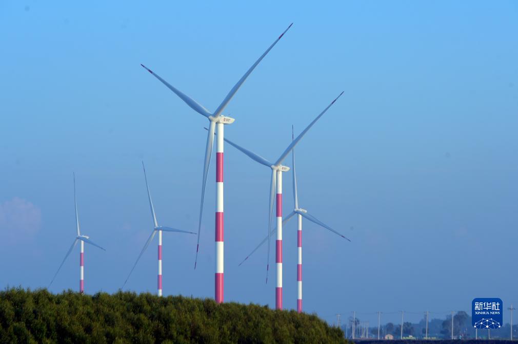 這是10月30日拍攝的孟加拉國科克斯巴扎爾風(fēng)電項目現場(chǎng)。