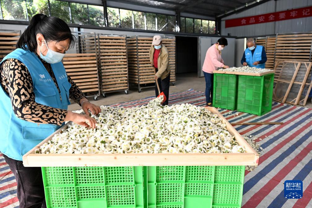 近日,安徽省蕪湖市繁昌區峨山鎮東島村貢菊種植基地的菊花進(jìn)入收獲期,當地村民搶抓晴好天氣采摘、加工。近年來(lái),東島村大力發(fā)展菊花產(chǎn)業(yè),采取“合作社+種植大戶(hù)+農戶(hù)”共同經(jīng)營(yíng)的模式,通過(guò)土地流轉、用工、分紅等方式幫助當地群眾增收。