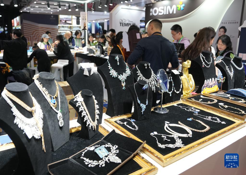 11月7日在第六屆進(jìn)博會(huì )消費品展區拍攝的來(lái)自捷克的水晶制品。