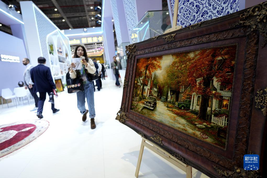11月7日,在第六屆進(jìn)博會(huì )國家展區,觀(guān)眾在伊朗展臺參觀(guān)。