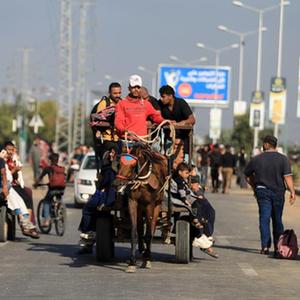 11月7日,在加沙地帶中部地區,巴勒斯坦人向南部遷移。