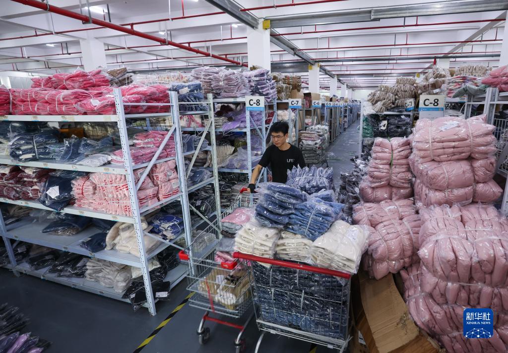 11月8日,在位于織里鎮的湖州織里煜果果制衣廠(chǎng)庫房?jì)?,工作人員根據訂單揀貨。