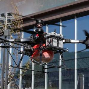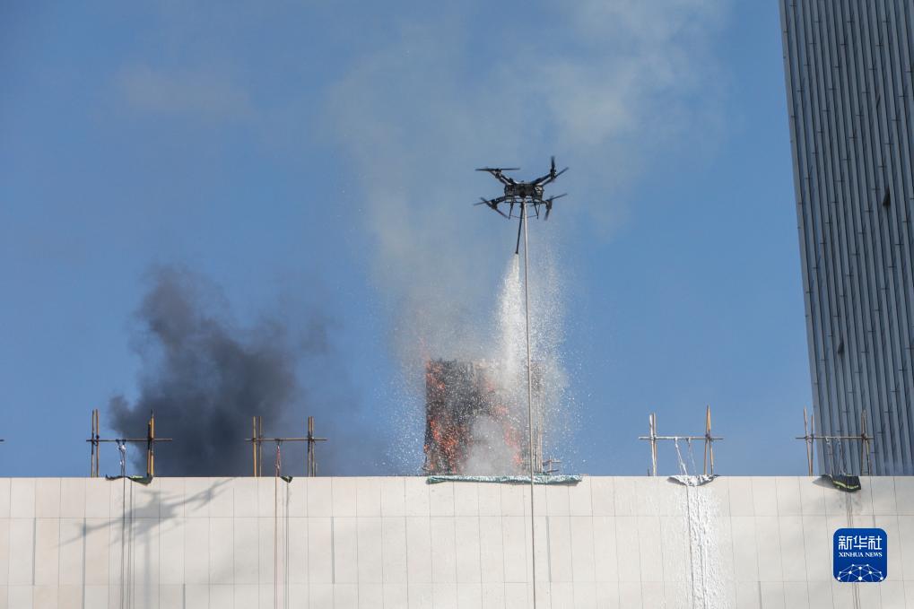 11月8日,高噴滅火無(wú)人機進(jìn)行高層建筑滅火救援實(shí)戰演練。