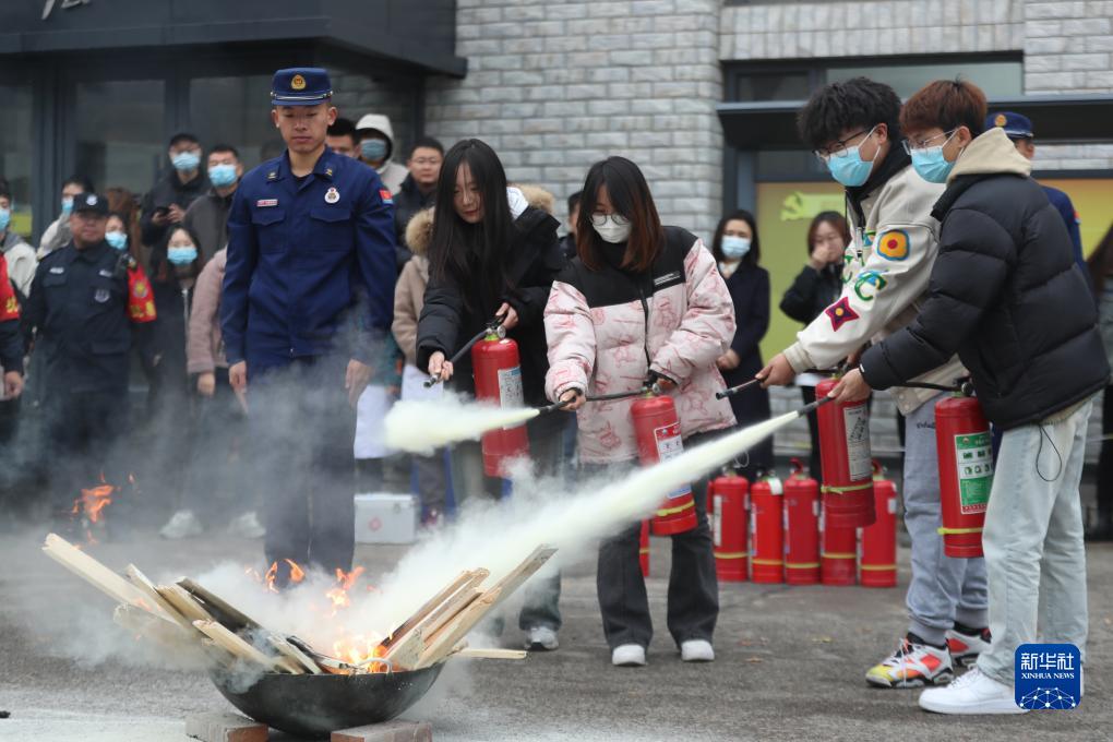 11月8日,沈陽(yáng)工學(xué)院學(xué)生演練使用滅火器。