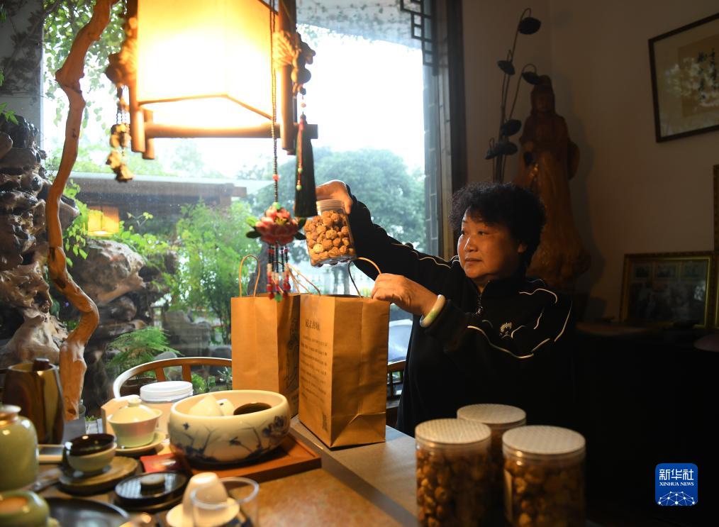 11月8日,村民黃劍英在家中包裝無(wú)花果干。黃劍英家承包了100多畝無(wú)花果種植基地,每年鮮果、干果的銷(xiāo)售額達數十萬(wàn)元。