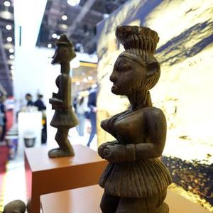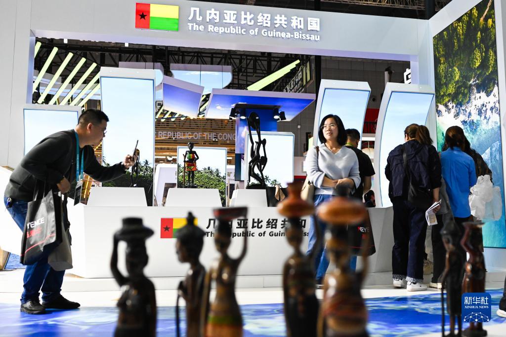 11月8日,觀(guān)眾在第六屆進(jìn)博會(huì )幾內亞比紹共和國展臺拍照。