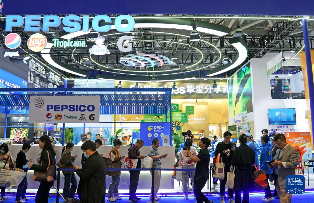 11月8日在第六屆進(jìn)博會(huì )食品及農產(chǎn)品展區拍攝的百事公司展臺。今年是百事公司首次參展進(jìn)博會(huì )。