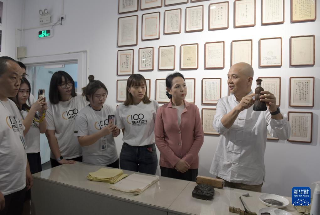 當日,十竹齋木版水印藝術(shù)作品展在暨南大學(xué)廣州石牌校區舉行。國家非遺項目木版水印技藝代表性傳承人魏立中在展覽現場(chǎng)為學(xué)生導賞、授課,并指導學(xué)生體驗木版水印手作的樂(lè )趣。