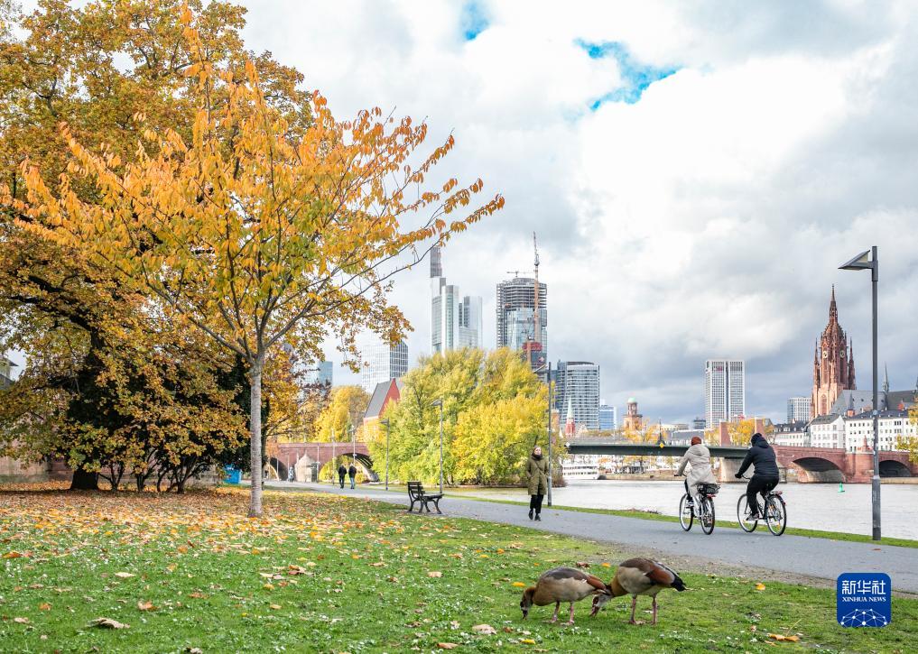 這是11月8日在德國法蘭克福拍攝的美因河畔秋日景象。