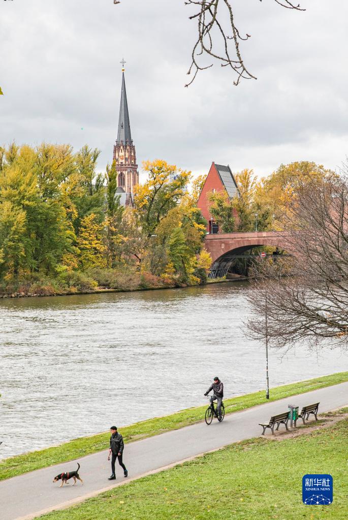 這是11月8日在德國法蘭克福拍攝的美因河畔秋日景象。