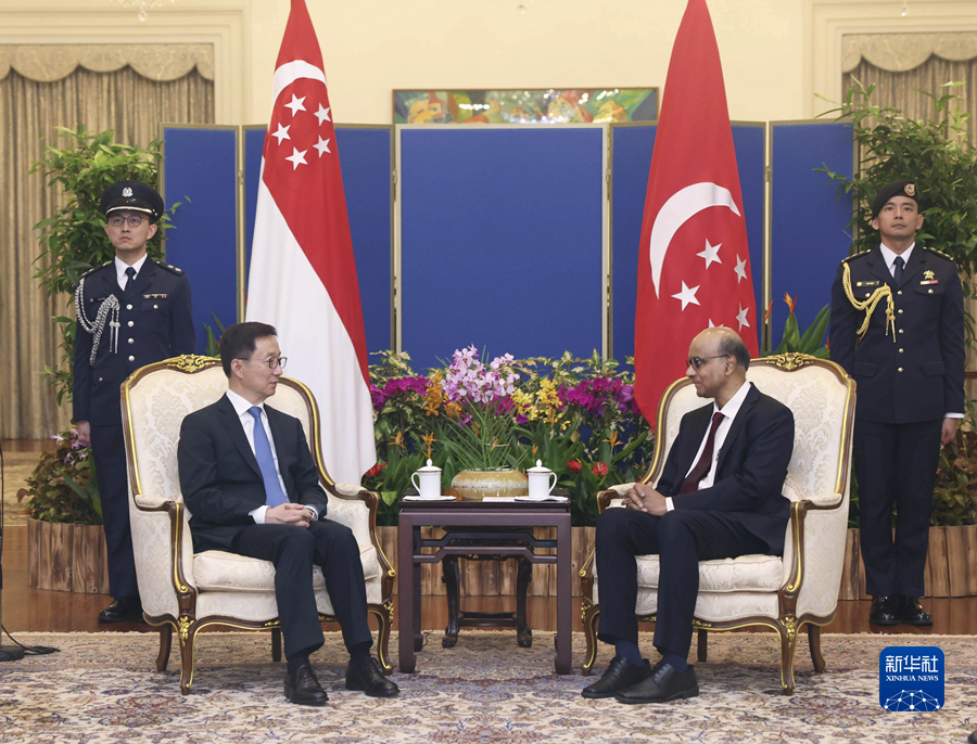 韓正會(huì )見(jiàn)新加坡總統尚達曼