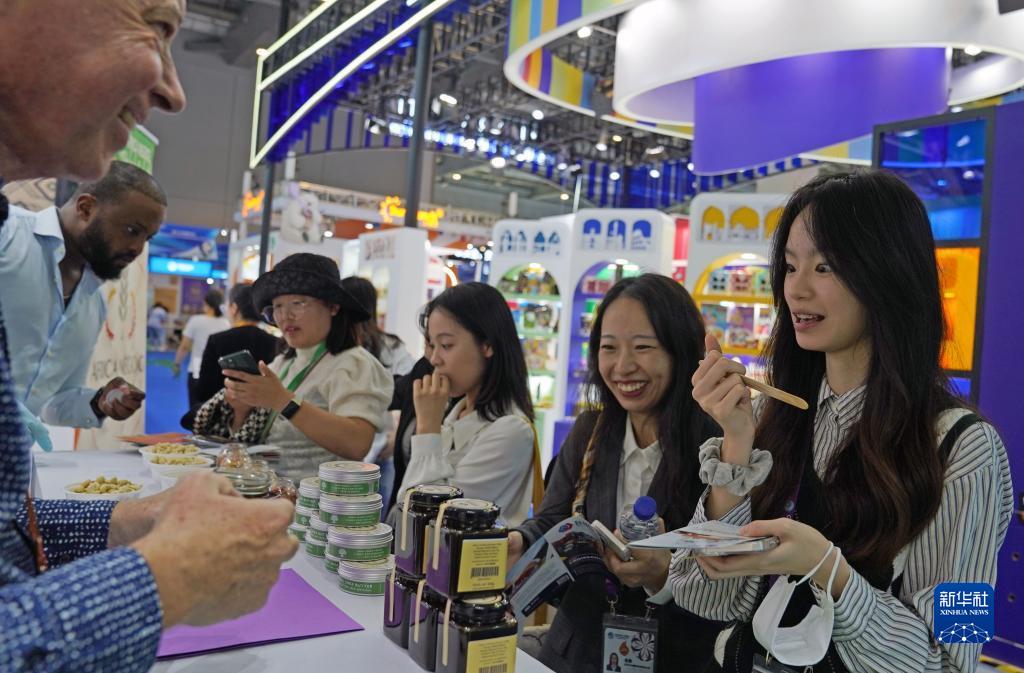 11月5日,在第六屆進(jìn)博會(huì )上,觀(guān)眾試吃貝寧蜂蜜產(chǎn)品。