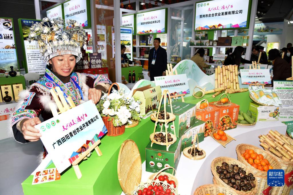 11月9日,一名來(lái)自廣西的參會(huì )者在布置展臺。