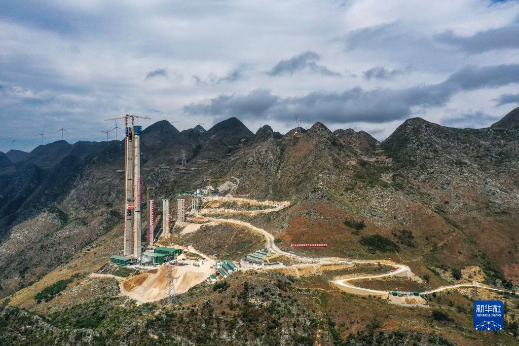 這是11月8日拍攝的貴州六安高速花江峽谷大橋建設現場(chǎng)(無(wú)人機照片)。