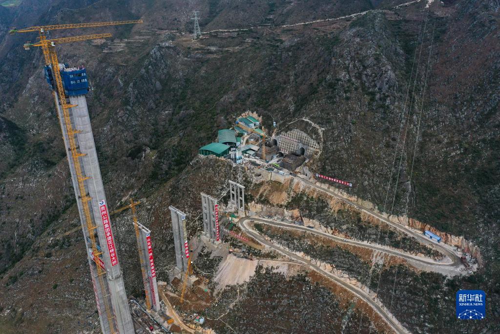 這是11月8日拍攝的貴州六安高速花江峽谷大橋建設現場(chǎng)(無(wú)人機照片)。